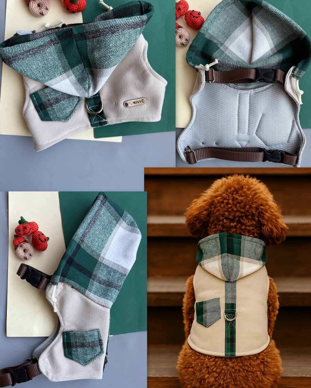 جلیقه/سویشرت طرح چهارخونه پودل پاییزی با کولهپشتی