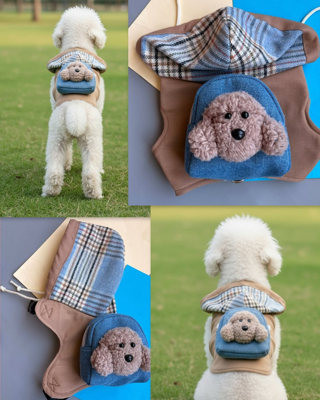جلیقه/سویشرت طرح چهارخونه پودل پاییزی با کوله‌پشتی