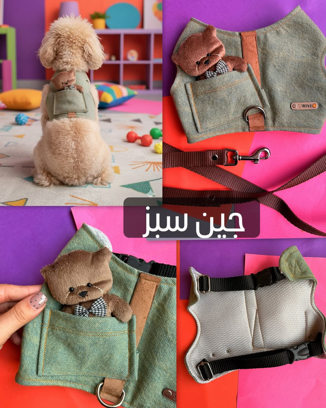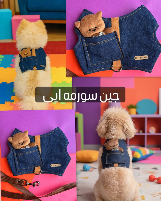 قلاده لباسی جین جیب دار خرسی