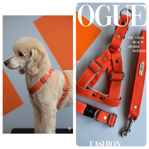 قلاده کتفی نارنجی چرم ( ۳ تیکه) گردنی و کتفی و لید